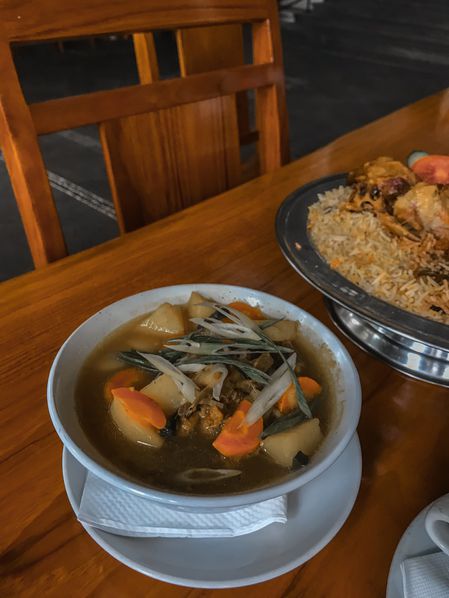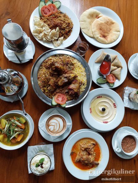 Tempat ini menyajikan beragam pilihan menu makanan khas Timur Tengah, salah satunya adalah nasi biryani dan kebab.