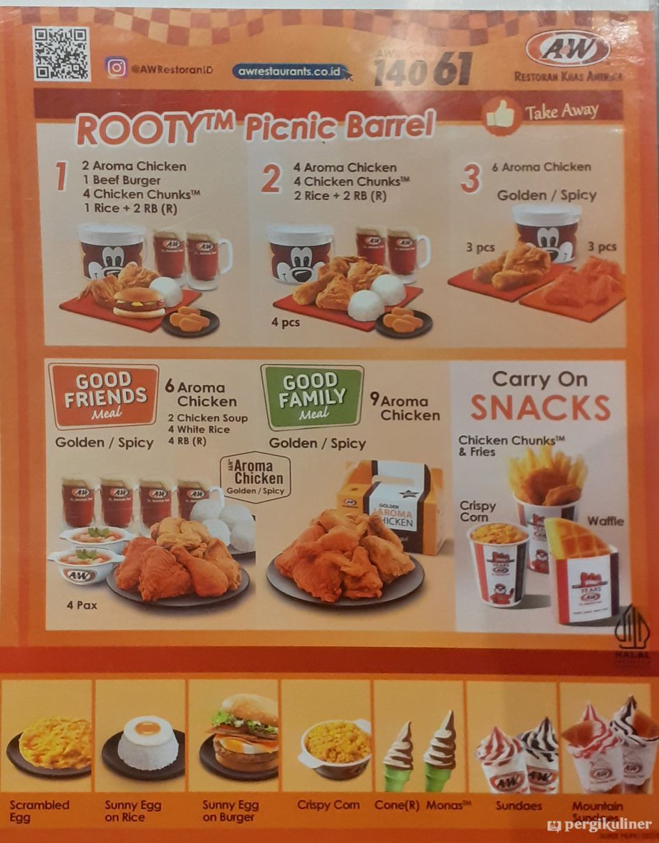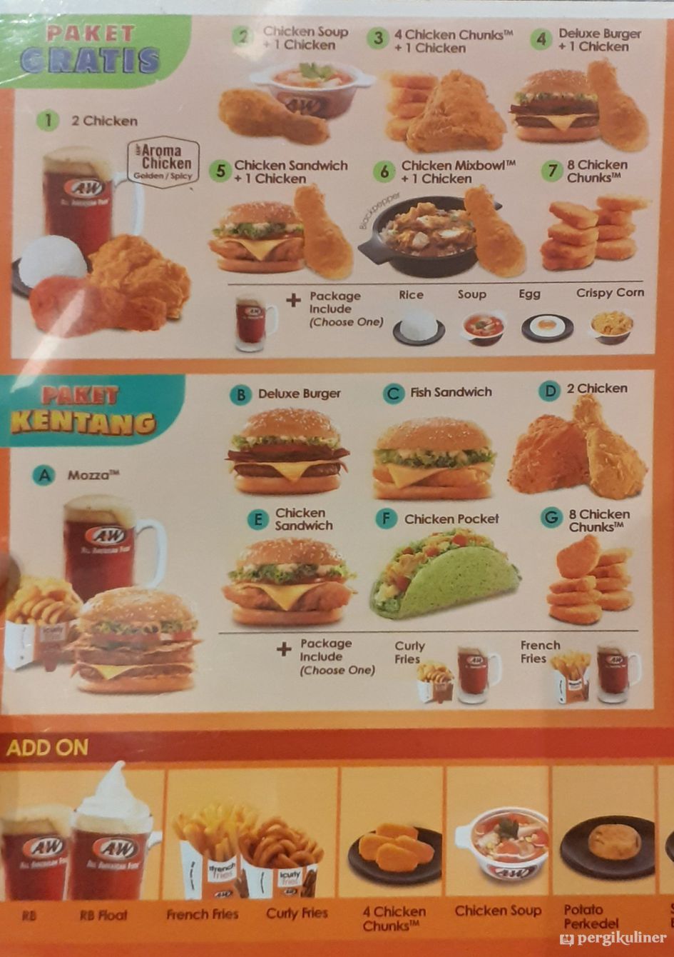 Waralaba makanan cepat saji yang terkenal dengan hidangan nasi ayam, burger, hot dog, dan root beer mereka.