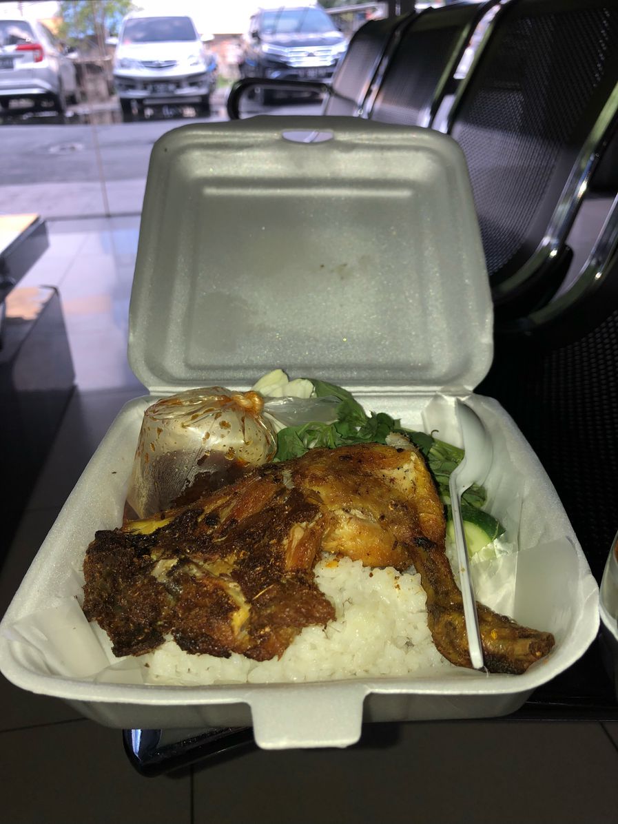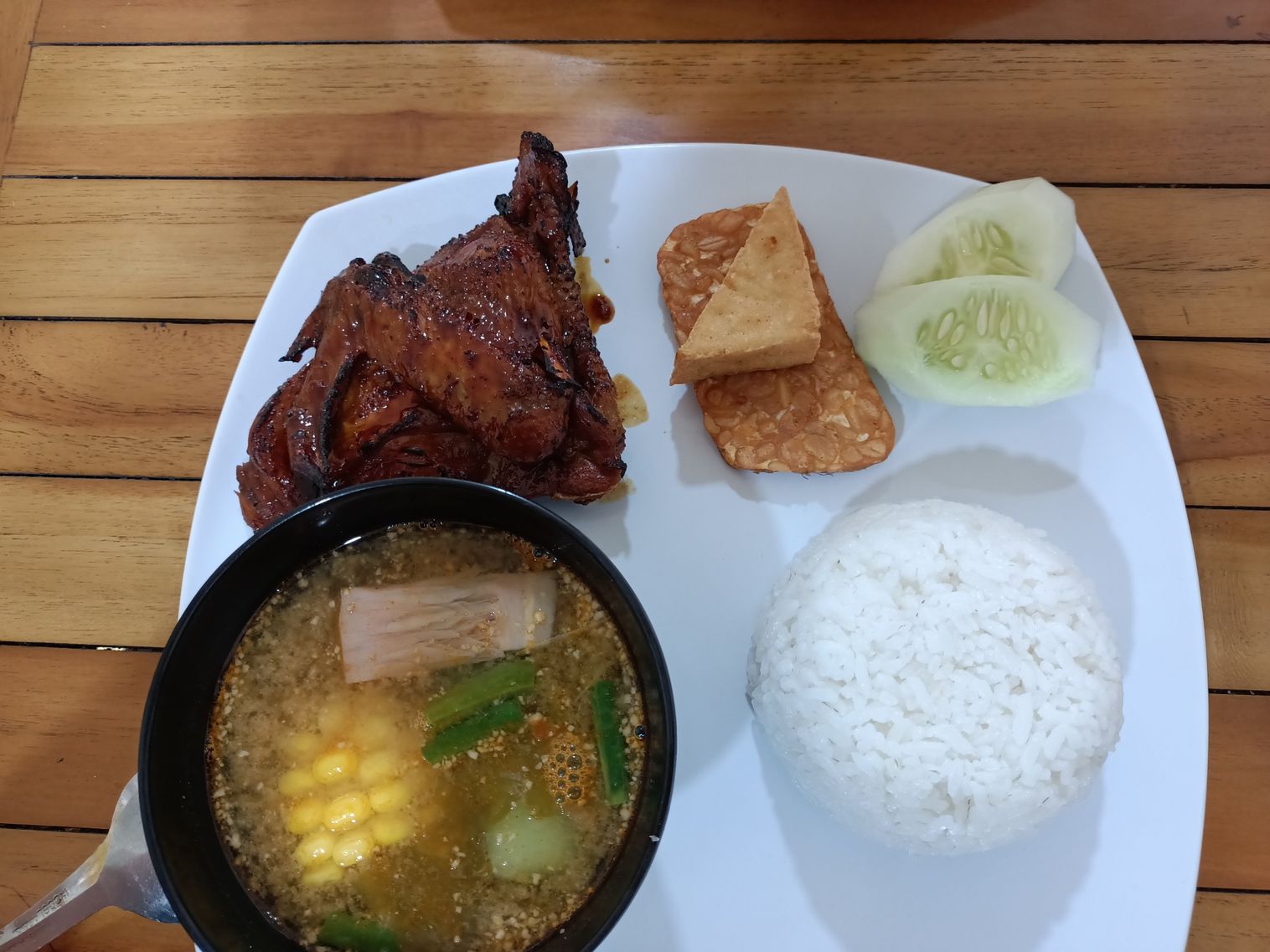 Ayamnya sama garing dan gurihnya, pula. Ya ampun, nyaring sekali ayamnya! Bahkan bola – bola ubinya juga buttery. Harganya juga sangat ramah kantong, beli set ayam seekor dan tahu tempe yang legit, plus bola ubinya itu, hanya 90 ribuan. Tahu begitu kalau nyaring begini saya beli lagi kremesan tambahan.