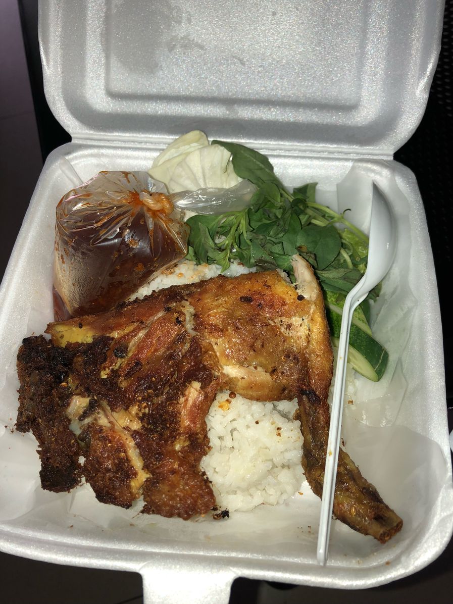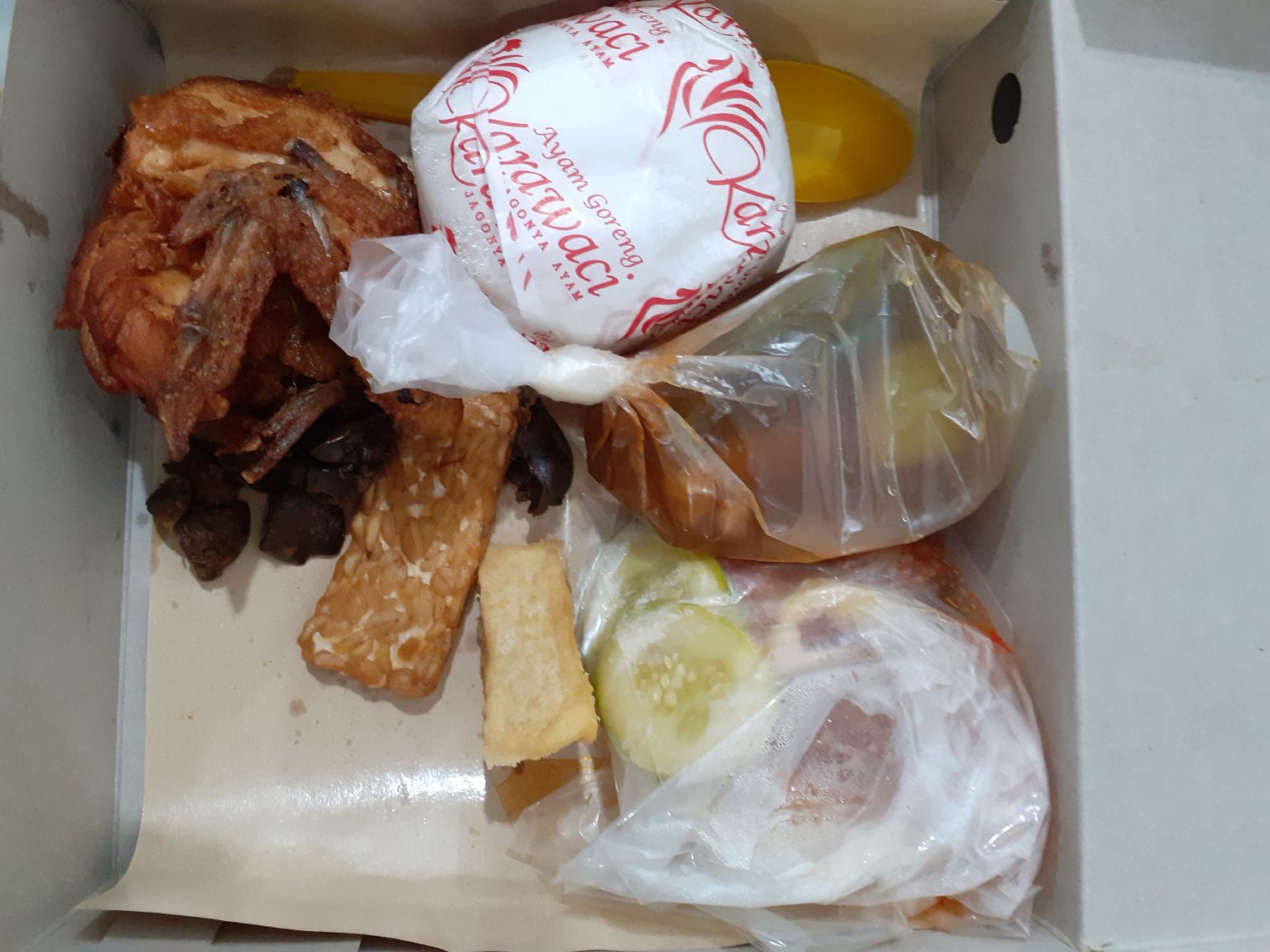 Gara2 korona jadi dapet catering dari kantor katanya supaya karyawan ga perlu repot2 cari n berinteraksi dgn pihak luar Tapi ini ayam gede doank ya ga fresh, ditambah ati n amplanya aga bau itu ud lama ato ga bersih nyucinya ya Untung ada sayur asem n tempe tahu jadi saya makan lumayan nikmat deh