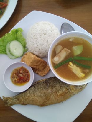 aku pesen bandeng presto (paket) , nasi pecel dan kangkung cah. karena lg puasa makan ayam jd gak nyobain ayamnya deh… buat bandeng nya enak, empuk dan wanginya