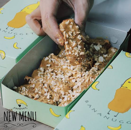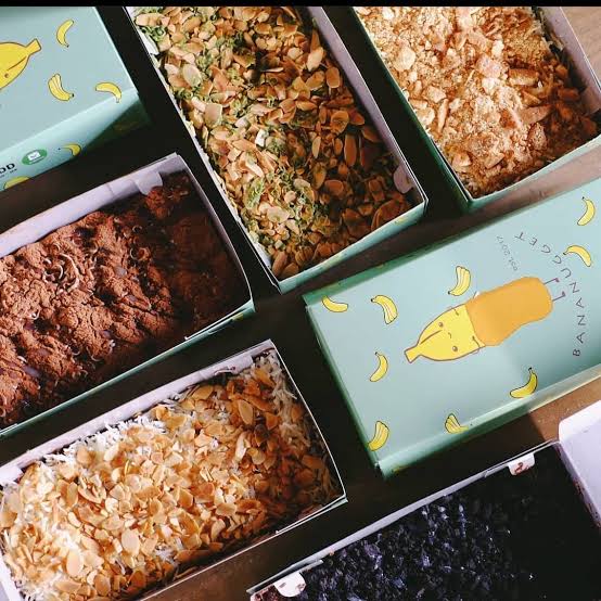 Menjual snack nugget pisang dengan topping yang beragam seperti cokelat, matcha, dll
