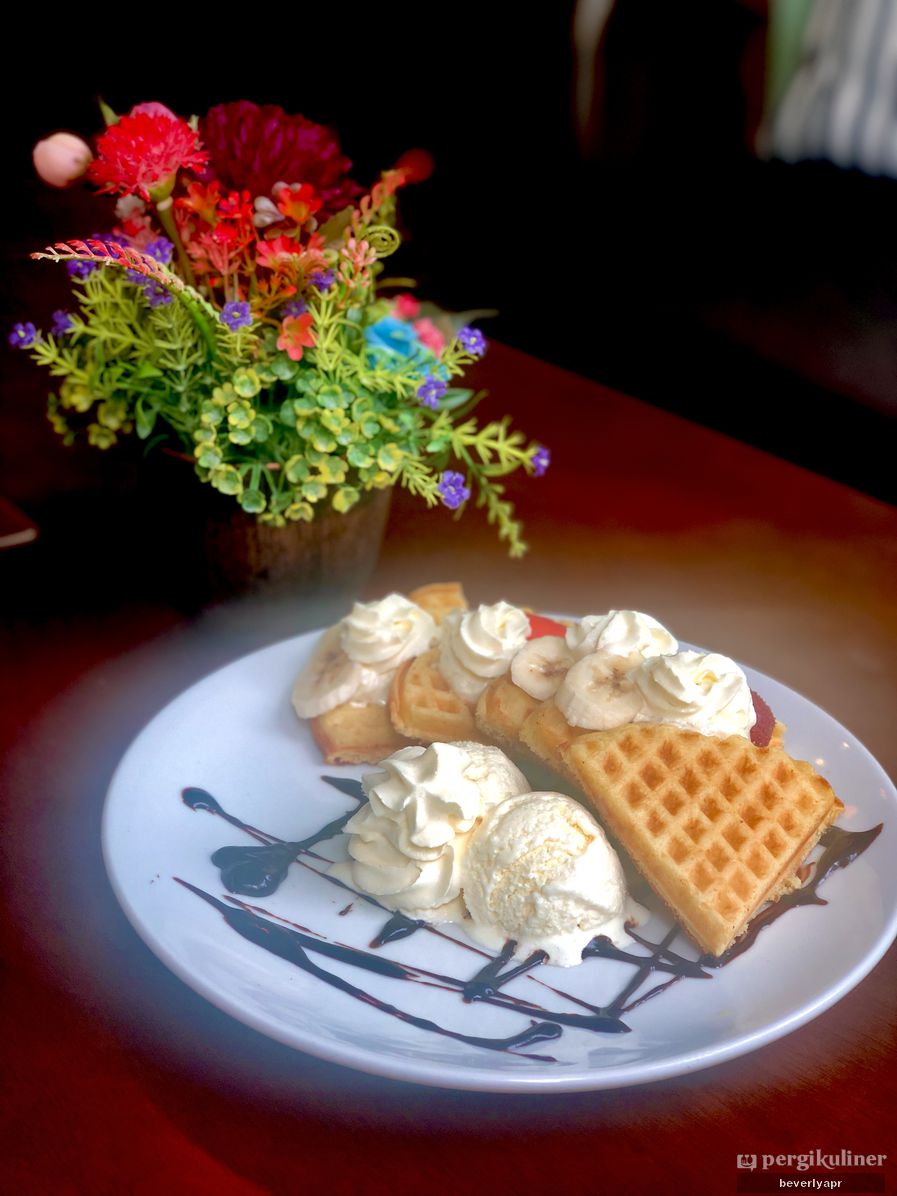 Kafe yang memikat serta menawarkan menu waffle dan dessert yang lezat, menjadi tempat yang sempurna untuk menikmati camilan manis dan hangout bersama teman-teman.