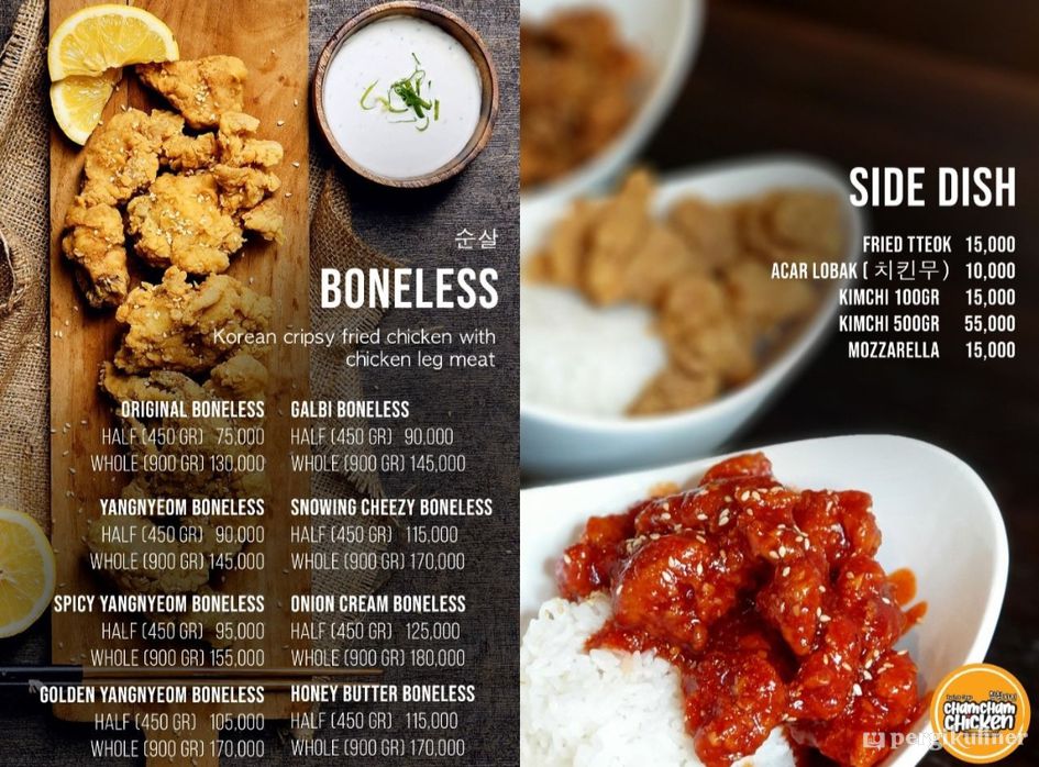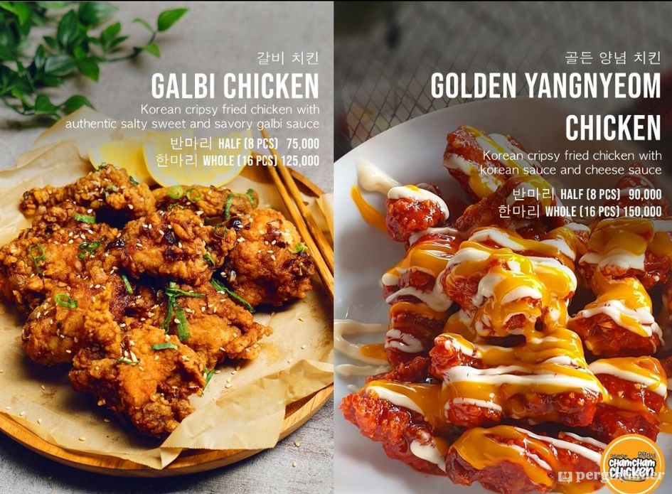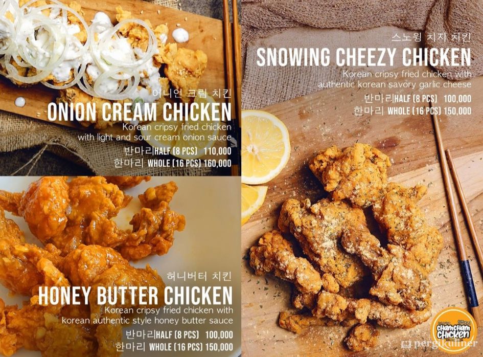 Menyediakan berbagai makanan khas Korea, khususnya ayam goreng dan topokki yang disajikan dalam beberapa pilihan rasa.