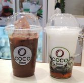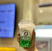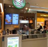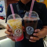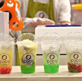 Gerai ini menyajikan beragam pilihan minuman menyegarkan yang terbuat dari campuran air kelapa segar.