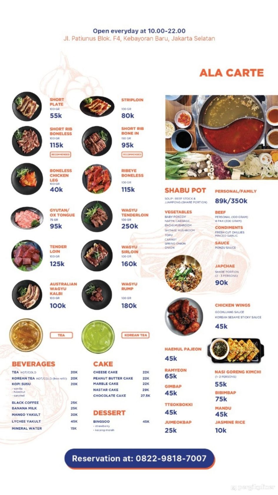 Menyediakan Korean BBQ yang bisa dipilih ala carte atau paket, dengan berbagai pilihan daging sapi yang lezat.