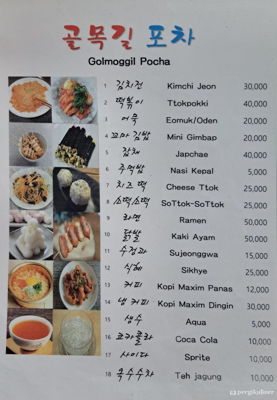Menyediakan berbagai menu makanan khas Korea seperti kimchi jeon dan japchae.