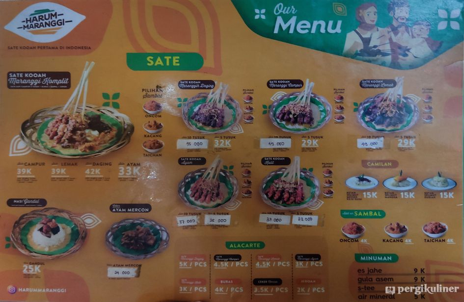 Resto ini menyajikan beragam pilihan menu makanan khas Indonesia yang lezat seperti sate maranggi dan nasi gandul.