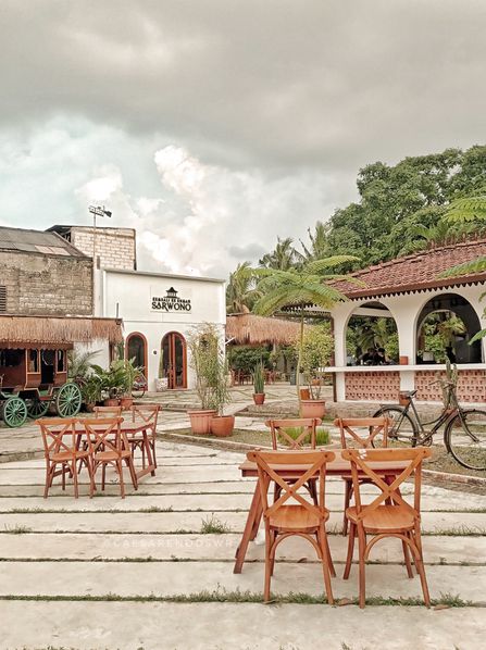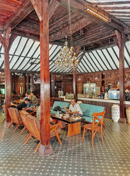 Kafe dengan konsep tradisional ala Jawa dengan adanya dua rumah joglo, namun ditambah lagi dengan sentuhan modern pada bangunan indoor dan area piknik.