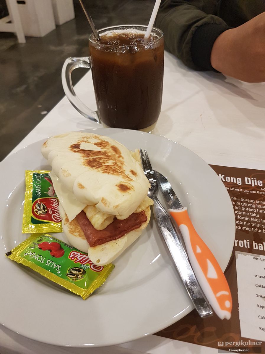 Duh nikmatnya bisa seruput secangkir kopi dan makan hong pao isi keju, telor dan ham. Kopi di tempat ini khas kopi Sumatera..mantapp