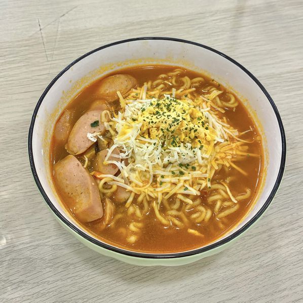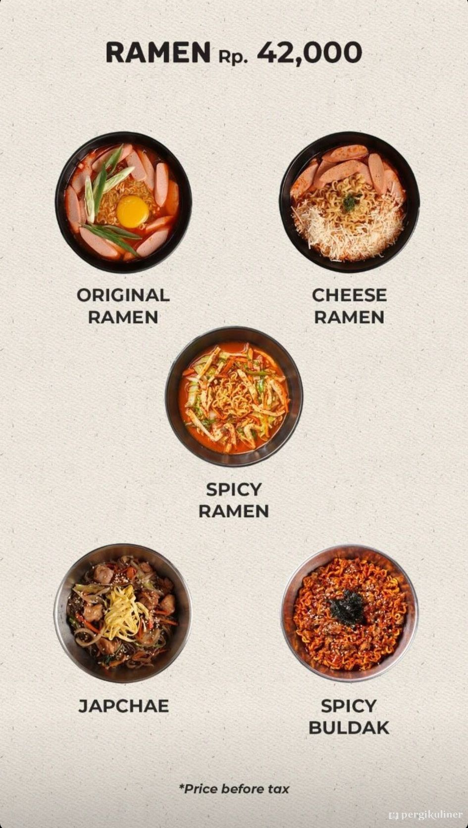 Resto ini menyediakan beragam pilihan makanan khas Korea seperti ramen dan topokki yang lezat.