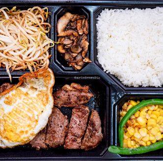 Tempat ini menyajikan beragam menu, termasuk wagyu pepper rice, chicken pepper rice, dan masih banyak lagi