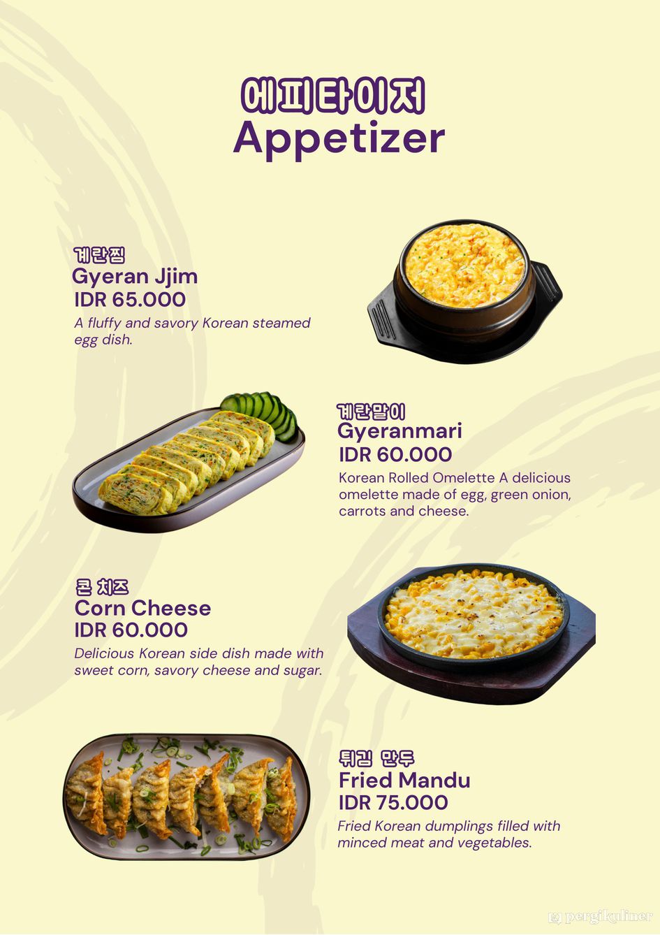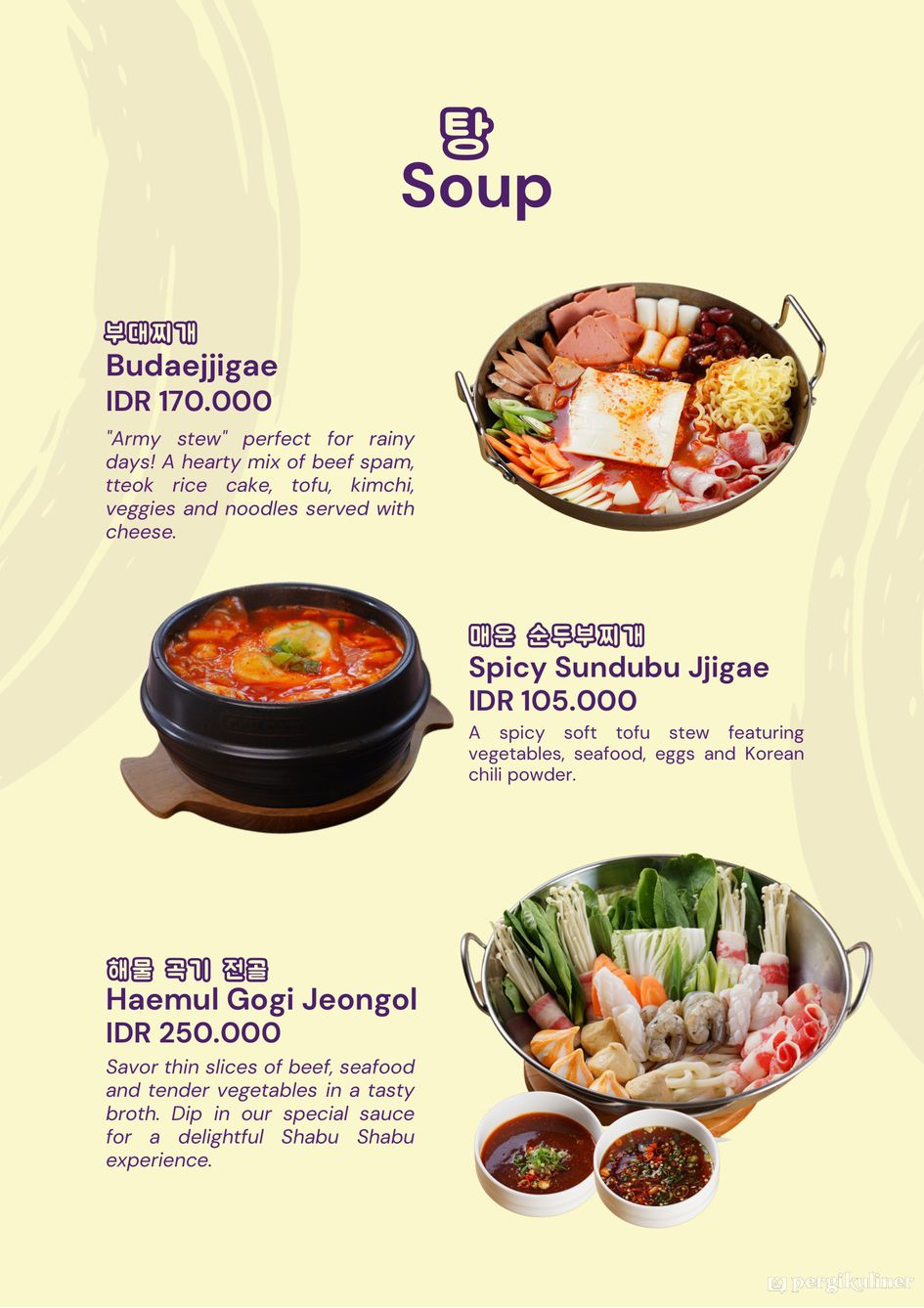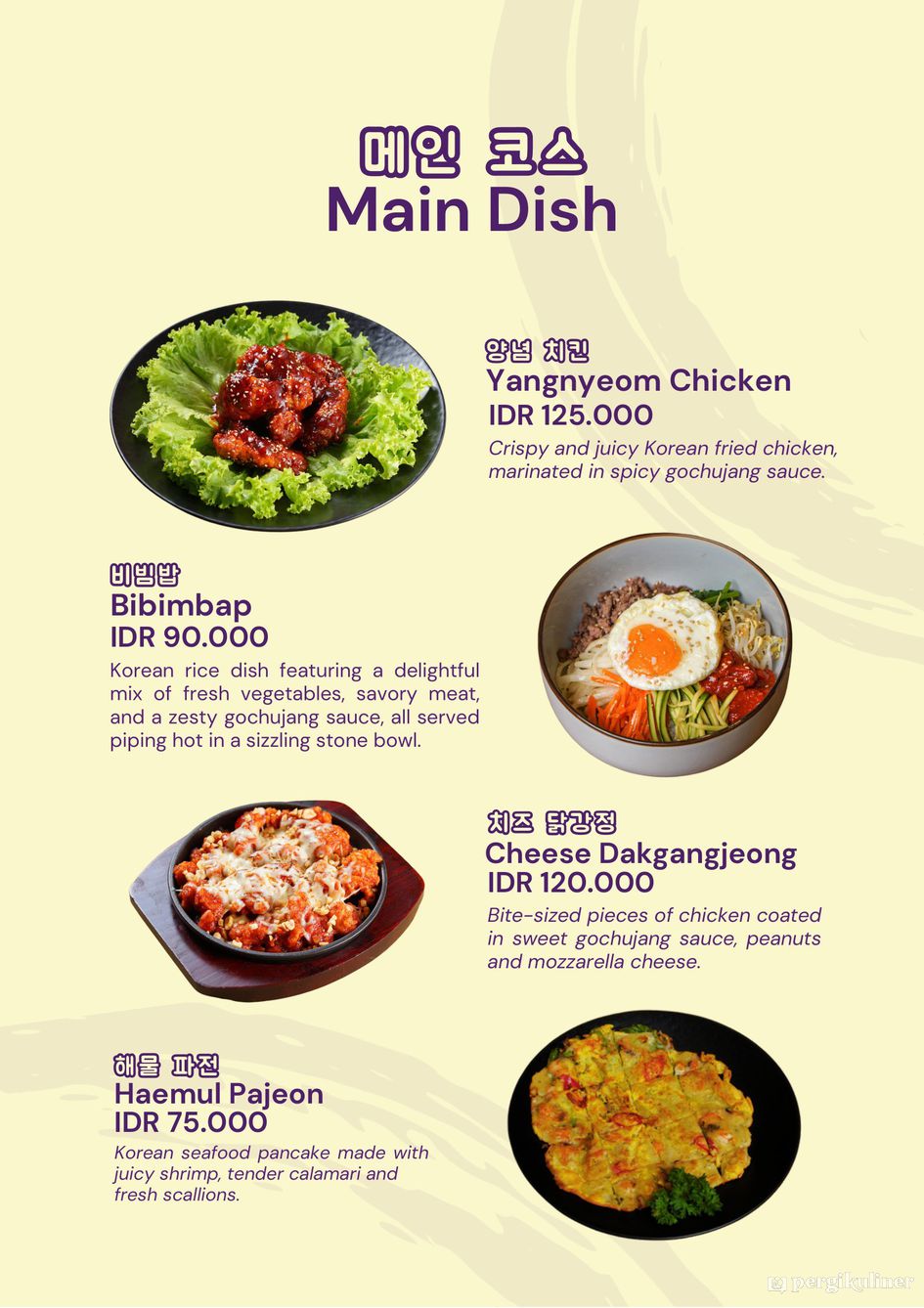 Menyediakan berbagai hidangan khas Korea seperti BBQ, jjampong dan samgyetang.