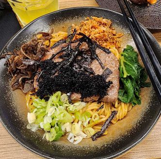 Restoran ini menyajikan beragam pilihan hidangan khas Jepang, termasuk ramen dan sushi.