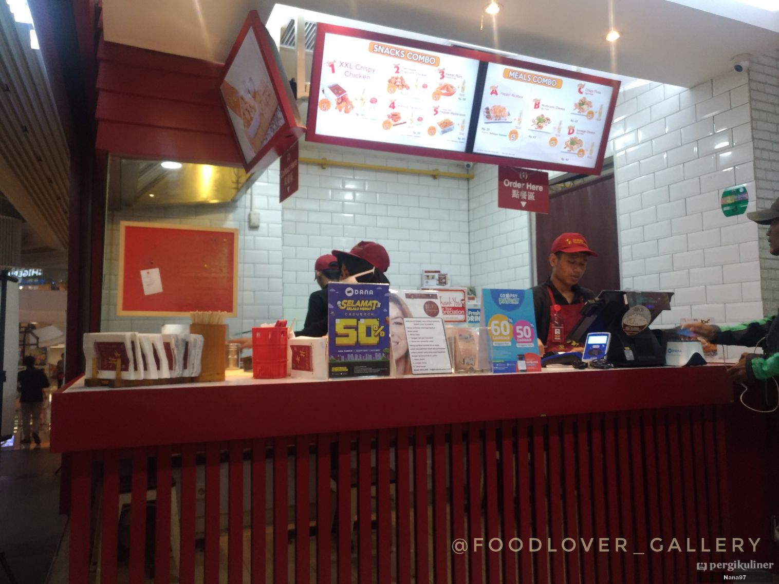 Saya pesen biasa xxl chicken seaweed untuk ukuran nya si lumayan gede ayam nya. Karena masih baru digoreng ayam nya masih di crispy. Tapi karena ada promo jadi nya ngantri nya lama banget..