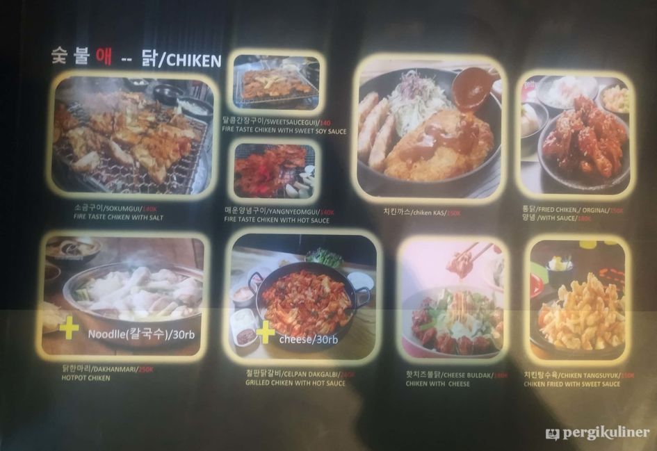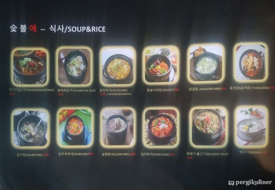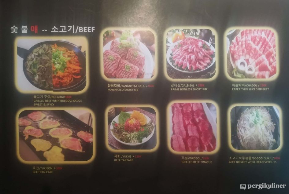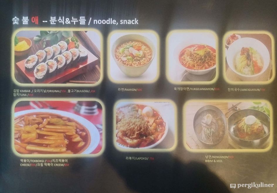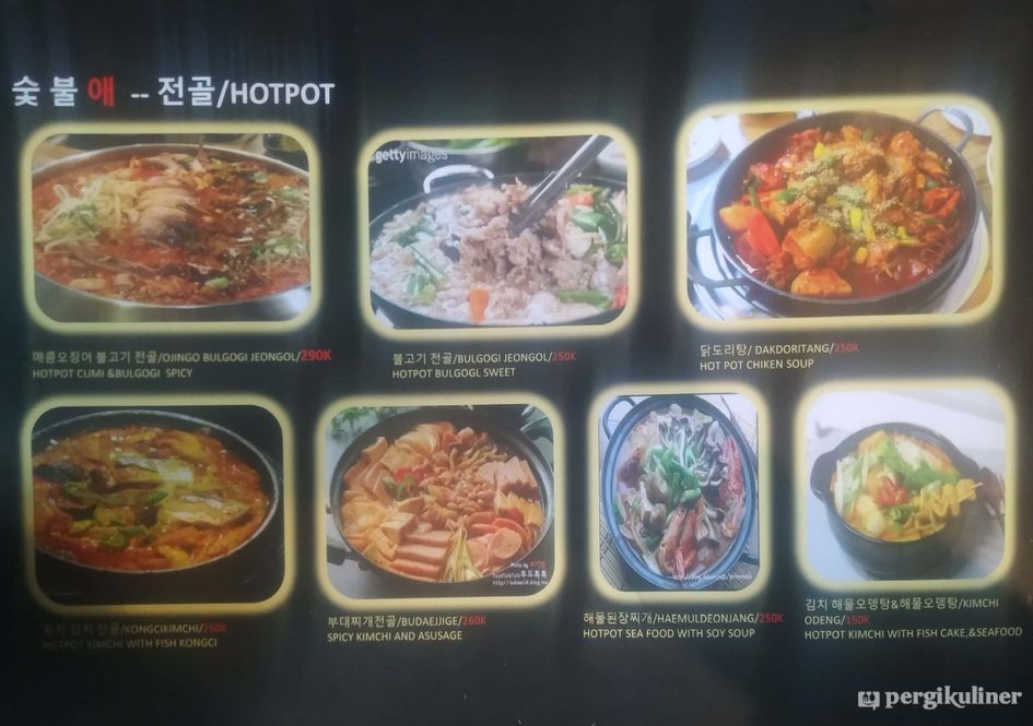 Menyediakan berbagai makanan khas Korea seperti aneka BBQ, budae jjigae dan tteokbokki.