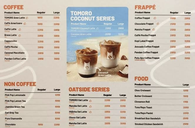 Kafe yang menyajikan berbagai menu minuman mulai dari coffee, non coffee, frappe, dan menu spesial oatside series. Tersedia juga makanan seperti sandwich, cinnamon roll dan toast.