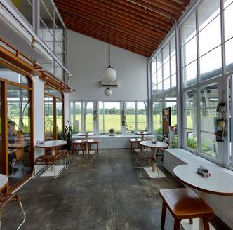 Kafe ini menyajikan beragam menu Western dan memiliki pemandangan yang menarik karena berdekatan dengan Driving Range (tempat bermain golf) di Bintaro.