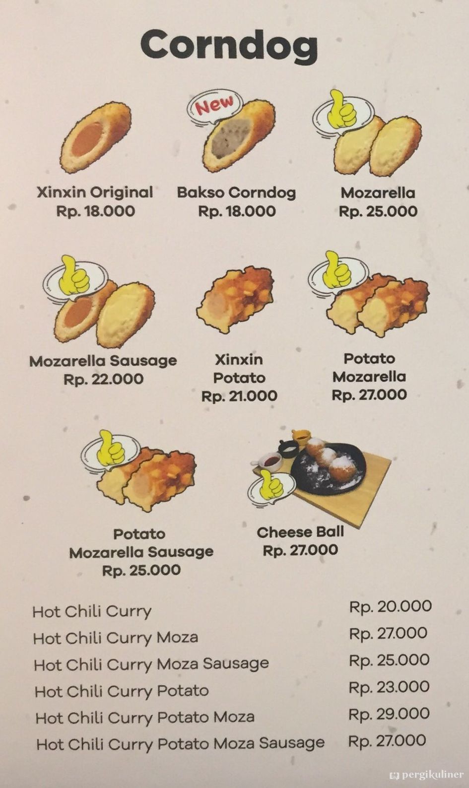 Menyediakan jajanan Korea berupa corndog dengan beragam pilihan isi seperti sosis dan keju mozzarella.