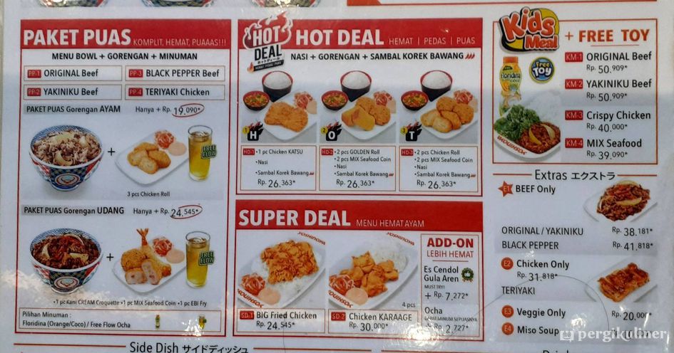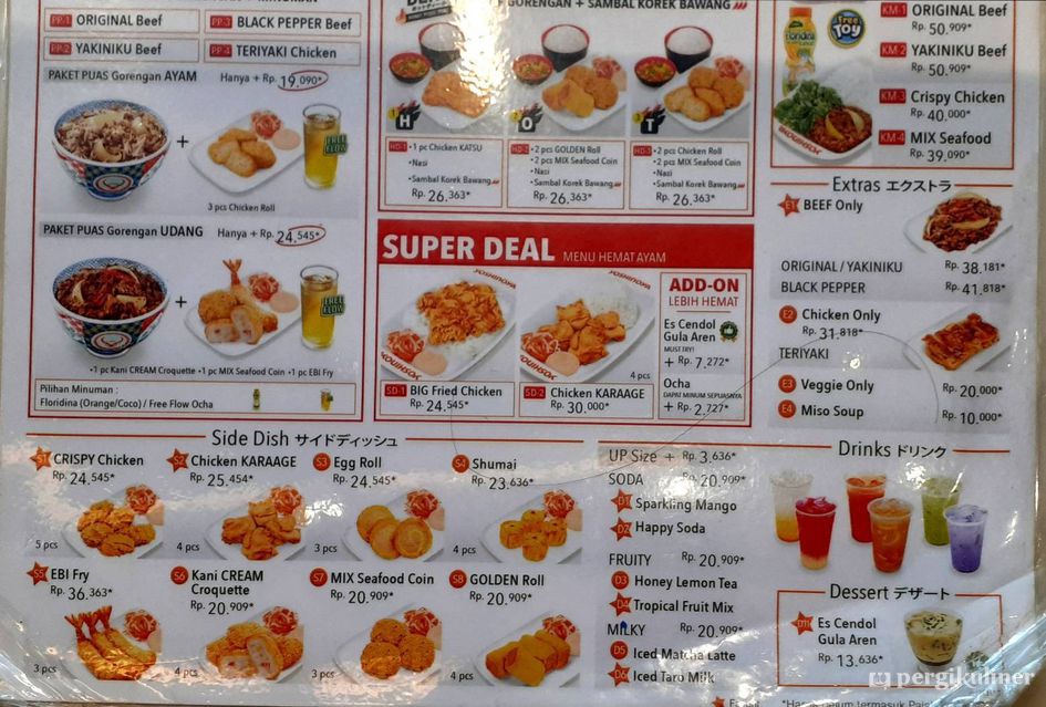 Restoran Jepang yang terkenal dengan hidangan rice bowl yang lezat. Menyajikan berbagai pilihan menu, mulai dari beef bowl hingga aneka gorengan yang nikmat.